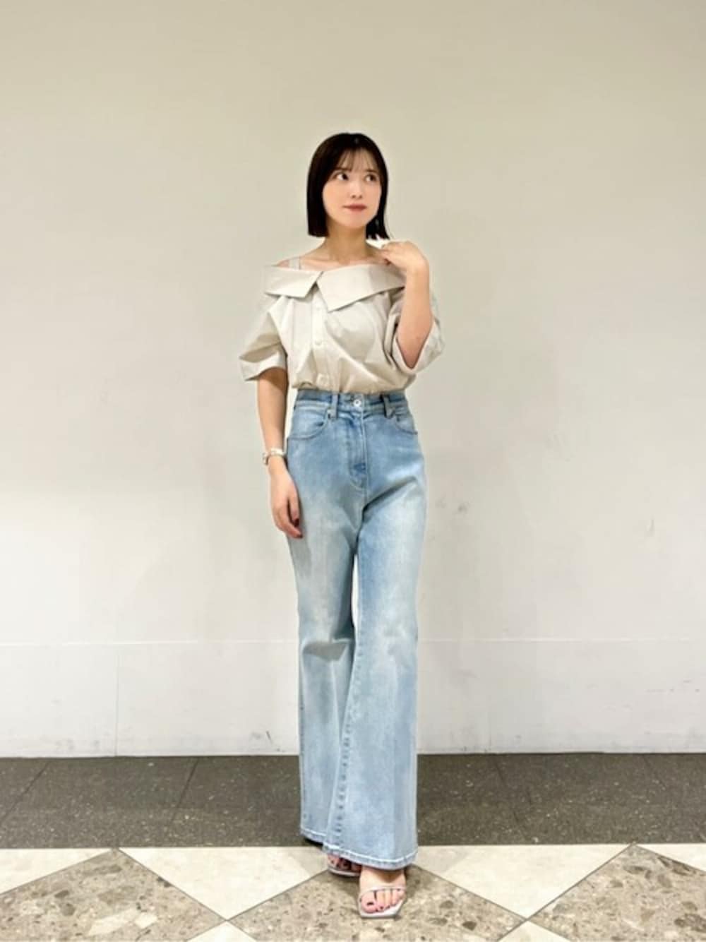 PROPORTION STAFF(PROPORTION BODY DRESSING)のシャツ/ブラウス「アシンメトリー5分袖シャツブラウス / 1214210505」を使ったコーディネート