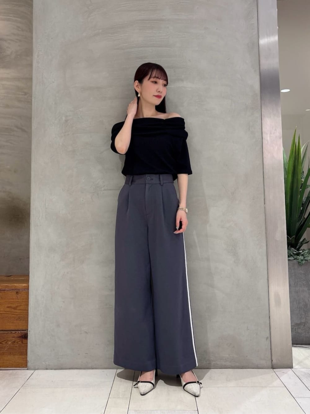 STAFF身長:162cm 【着用サイズ 】カットソー:FR /パンツ:S 《カットソー》デコルテラインを綺麗に見せてくれる、春夏一枚はマストで欲しいオフショルトップスです♡二の腕カバーをしてくれる安心感のある袖丈が嬉しいポイント◎着心地の良いサラッとしたカットソーなので、真夏にもぴったりな一枚です! 《パンツ》サイドラインがスポーティーで今っぽさのあるラインパンツです♡バックスタイルはリラックス感のあるゴム仕様なので着心地も◎綺麗に広がる程よいワイドシルエットなので、体のラインをかばーしつつ足長効果を高めてくれます!