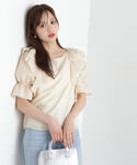 STAFF身長:153cm 【着用サイズ】トップス:S/スカート:XS/カーディガン:FR 《トップス》春に人気だったアイテムが、夏バージョンにアップデートされました♡ショルダーリボンが顔まわりを華やかな印象にしてくれる着映えブラウスです♪袖はやわかいゴムが入っており袖丈を調整しやすいので、羽織に合わせていただきやすいです◎身頃は裏地がついており、袖は程よいシアー素材が抜け感がでますよね!スカートと合わせてフェミニンに、デニムと合わせて綺麗めカジュアルにも◎ 《スカート》涼しげなシアー感が夏にぴったりのスカートです♡前にはラッフルが施されており、程よい大人可愛さを演出してくれます!フレアスカートですが軽い生地感でボリュームは抑えられていますので、マーメイドやタイトがお好きな方にもオススメです◎後ろ側にウエストゴムがついておりインコーデも楽ちんです!小柄な方もフラットシューズを合わせやすい着丈と足元のシアー感で、軽やかな印象にしてくれます♡ 《カーディガン》昨年即完だったカーディガンです!どんな丈にもバランスが合う絶妙な腰までのミドル丈で、1枚あるとオシャレな羽織としてお使いいただけます◎生地には細かいラメが施されており、光にあたってキラキラとするのもすごく夏らしくて可愛いですよ♡肌あたりはとても軽く、サラサラとしているので、これから暑くなる時期にも羽織りやすいですよね♪