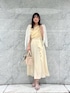 STAFF身長:153cm 【着用サイズ】トップス:S/スカート:XS/カーディガン:FR 《トップス》春に人気だったアイテムが、夏バージョンにアップデートされました♡ショルダーリボンが顔まわりを華やかな印象にしてくれる着映えブラウスです♪袖はやわかいゴムが入っており袖丈を調整しやすいので、羽織に合わせていただきやすいです◎身頃は裏地がついており、袖は程よいシアー素材が抜け感がでますよね!スカートと合わせてフェミニンに、デニムと合わせて綺麗めカジュアルにも◎ 《スカート》涼しげなシアー感が夏にぴったりのスカートです♡前にはラッフルが施されており、程よい大人可愛さを演出してくれます!フレアスカートですが軽い生地感でボリュームは抑えられていますので、マーメイドやタイトがお好きな方にもオススメです◎後ろ側にウエストゴムがついておりインコーデも楽ちんです!小柄な方もフラットシューズを合わせやすい着丈と足元のシアー感で、軽やかな印象にしてくれます♡ 《カーディガン》昨年即完だったカーディガンです!どんな丈にもバランスが合う絶妙な腰までのミドル丈で、1枚あるとオシャレな羽織としてお使いいただけます◎生地には細かいラメが施されており、光にあたってキラキラとするのもすごく夏らしくて可愛いですよ♡肌あたりはとても軽く、サラサラとしているので、これから暑くなる時期にも羽織りやすいですよね♪
