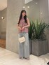 STAFF身長:162cm 【着用サイズ 】ブラウス:FR /パンツ:S 《ブラウス》 ふわっとしたティアードデザインが女性らしく、大きめのバックリボンが映えるヘルシーで大人かわいい一枚♡腰地位が隠れるくらいの着丈なので、パンツスタイルやタイトスカートとの合わせがおすすめです◎程よいシアー感があり涼し気な印象を与えてくれるので、今からの時期にぴったりなデザインです! 《パンツ》程よい広がりがリラックス感を高め、すとんと落ちるストレートラインが美脚効果のあるワイドパンツです。プロポらしいシルエットにこだわった一枚なので、フェミニン派さんも挑戦しやすいです!コットン100%なので、シーズンレスで着まわせるのも嬉しいポイント。