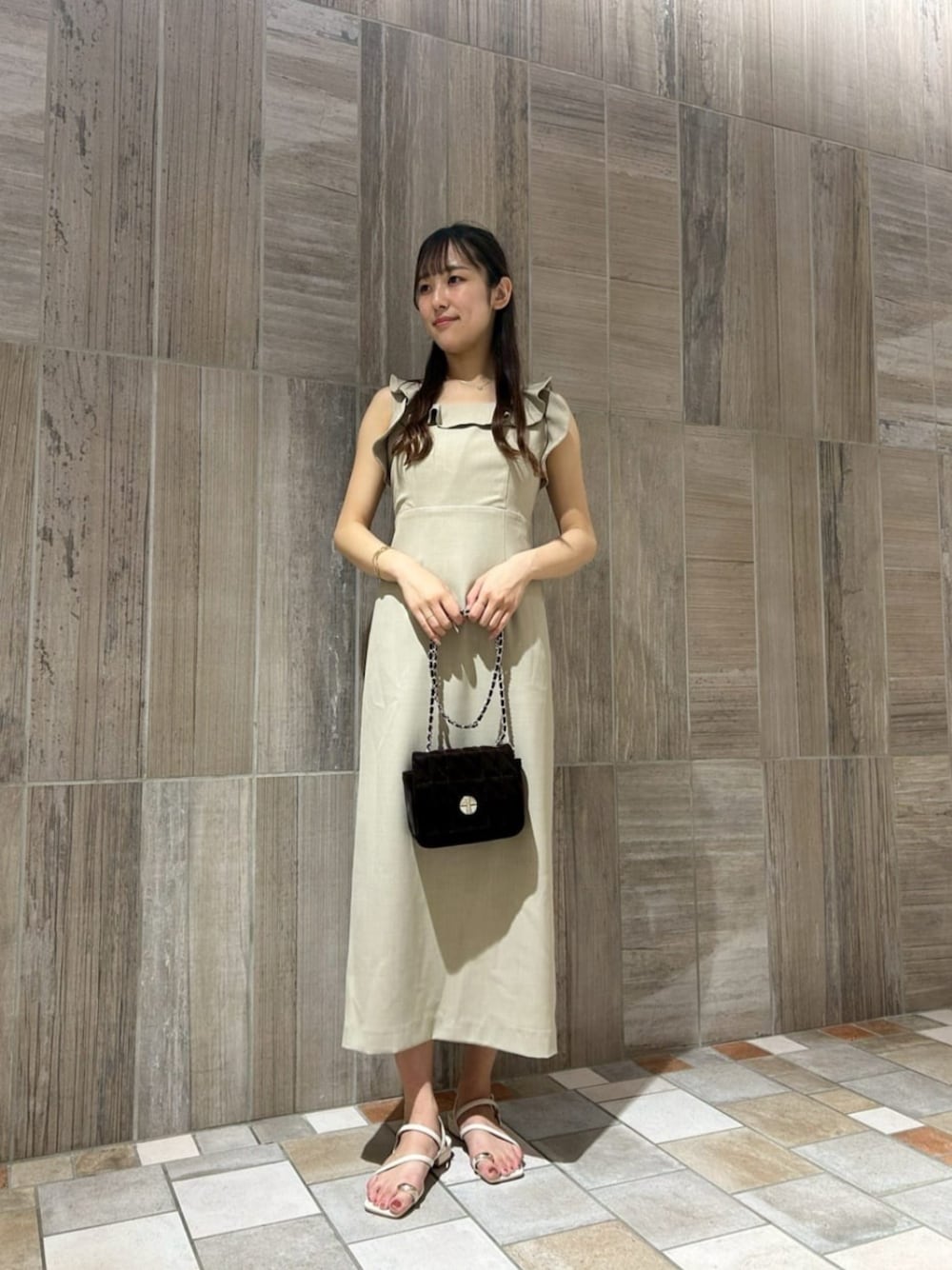 STAFF身長:164㎝ 【着用サイズ】ワンピース:S バックスタイルまで可愛いラッフルデザインとゴム使用のウエストでどこから見てもスタイルアップする上品見えワンピースです! タイトワンピースですが、締め付け感はなく、深めのスリットで足さばき良くお召しいただけます♡
