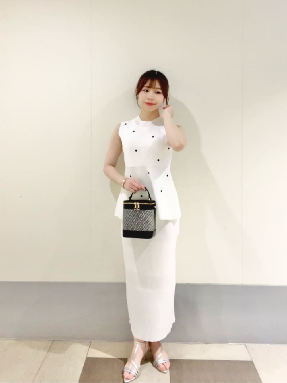 STAFF身長:155cm 【着用サイズ】セットアップ:PS 《ドット刺繍ニットセットアップ》甘くなりすぎない、さりげないドット刺繍が大人華やかなデザイン♪程よいハリ感と厚みのあるニットで、シルエットを綺麗に保てます◎ トップスのペプラムシルエットは、ウエスト切り替え位置が高く、裾フレアのデザインが腰周もカバーしてくれます! 上半身をコンパクト見えしてくれる且つ、体型カバー+脚長効果も叶えてくれる優秀アイテム♡ さらっとしたニット素材を使用しており、ピタッと張り付くような着心地感もなく、暑い夏場でもストレスフリーです!