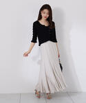 STAFF身長:158cm 【着用サイズ】トップス:FR/ボトムス:S 《トップス》顔まわりを華やかに見せてくれる、取り外し可能なタイ付きのニット。その日の気分やスタイルに合わせて、リングにタイを通したり、タイなしでシンプルに着たりとアレンジ自由です🤍フリーサイズですが、体のラインを拾いすぎず、すっきりと見せてくれる絶妙なフィット感でお召しいただけます!オンにもオフにも活躍する、着回し力抜群のトップスです。 《ボトムス》動くたびに揺れるエスカルゴシルエットが魅力のナロースカートです。落ち感のある素材とすっきりとした縦ラインにより、腰回りをコンパクトに見せスタイルアップが叶います✨ ウエストはゴム仕様でラクな着心地ながら、きちんと見えし、大人フェミニンなコーディネートにもってこいの一枚です。