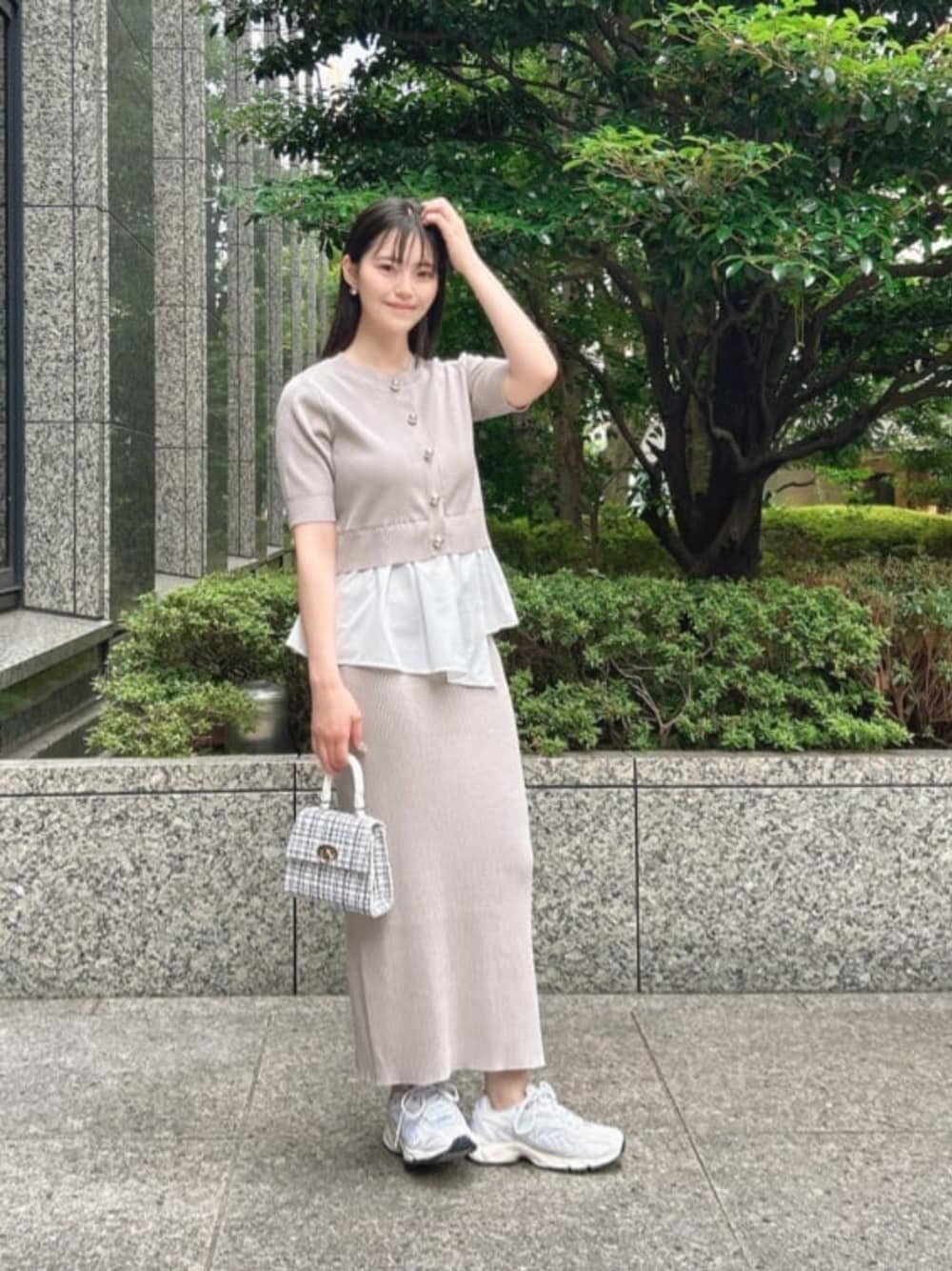 STAFF身長:161cm 【着用サイズ】セットアップ:M 《レイヤード風ニットセットアップ》カーディガンのようなデザインが目を引くプルオーバーと、ナローシルエットのニットスカートの上品なセットアップ。ボディラインをすっきりと見せるスカートと合わせることで、バランスよくスタイルアップを叶えてくれるのも嬉しいポイント✨ フェミニンさと洗練された印象を両立し、デイリーからお出かけまで幅広いシーンで活躍する一着です👀