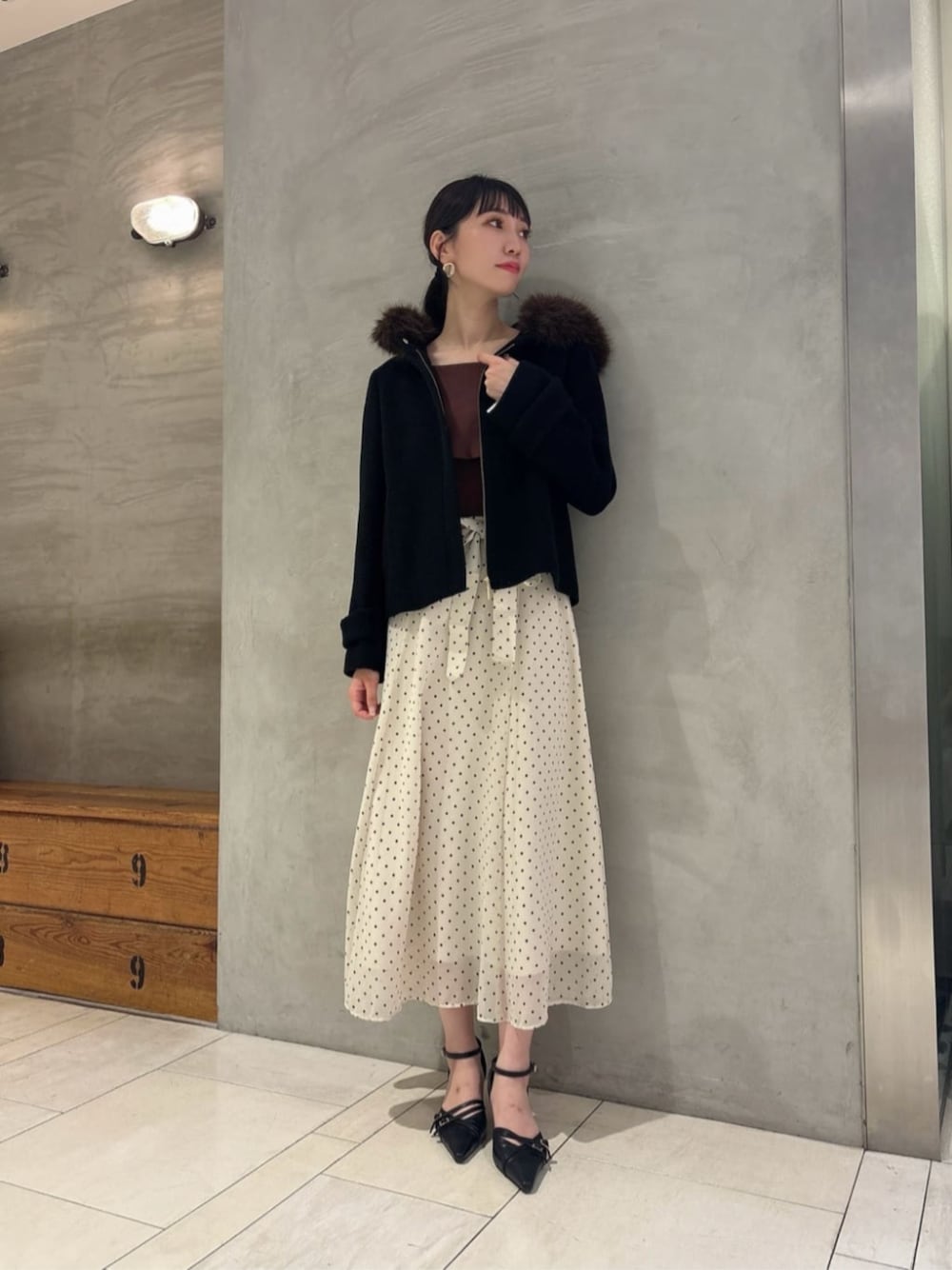 STAFF身長:162cm 【着用サイズ 】ワンピース:S/アウター:M 腰まわりをカバーしてくれる着回しもしやすいショート丈コートです♡ゴールドファスナーが高見えし、顔まわりのファーもフェミニンな印象に仕上げてくれます!大人っぽく仕上がるブラックはコーデの締めカラーにもなり、上半身をすっきり見せてくれます!日本製ウール87%が含まれた軽くて暖かい着心地も◎