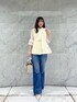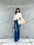 STAFF身長:153cm 【着用サイズ】トップス:S/パンツ:S/ジレ:S 《トップス》程よい透け感が女性らしいリボンブラウスは、身頃には裏地が付いているので、安心してご着用いただけます◎首元はほどよく締まり、大人っぽい雰囲気に♪袖口にはゴムが入っており、上げると手首をスッキリ見せてくれます!リボンは取り外しができ、シンプルなブラウスとしても着用できるので、シーンに合わせて雰囲気を変えられる一枚です♡ 《パンツ》脚を長く見せてくれるプロポーションこだわりのシルエットがポイントです♡裾がフレアになるデザインですが、太もも周りはラインを拾いすぎないのが嬉しいです♪ハイウエストデザインでINするとよりスタイルアップが叶います!150cm前後の方はSサイズ着用・ヒールありでも、長すぎない着丈でご着用いただけます! 《ジレ》さりげなく輝くツイード素材が上品なジレです!表面に凹凸感のあるボタンがポイントで、シンプルながらもおしゃれなアクセントになっています♡首元がすっきり開いたデザインなので、リボンブラウスとの相性も抜群です◎ウエスト位置を高めに設定しているため、ロングスカートにもパンツスタイルにも合わせやすく、スタイルアップ効果が期待できます!