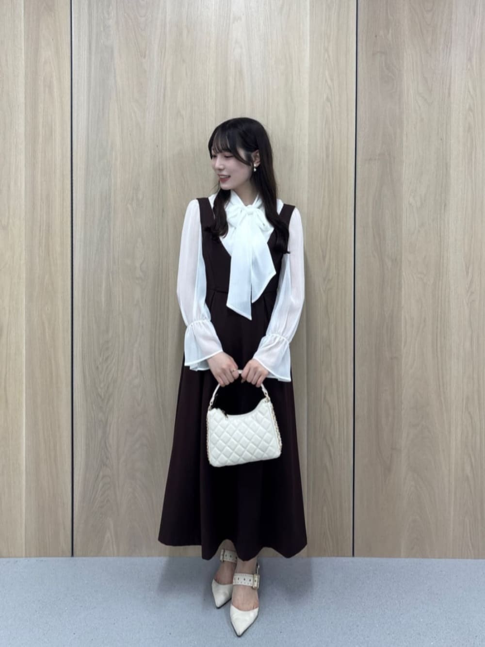 STAFF身長:152cm 【着用サイズ】 トップス:S/ ワンピース:PS 《ブラウス》顔まわりを華やかに魅せてくれるボウタイ付きブラウス♡袖口のキャンディスリーブが手元を華奢に見せつつ、ほんのり甘さをプラスしてくれます♪ボウタイは取り外し可能なので、シーンに合わせてきちんと感も、シンプルな抜け感スタイルも自在に◎ 程よい透け感が軽やかさを演出し、オンオフ問わず活躍する万能ブラウスです! 《ワンピース》シルエットを拾いすぎないフレアラインが女性らしいジャンスカ♡すっきりとしたVネックでインナーを選ばず、幅広いコーデが楽しめます!取り外し可能なベルトがさり気ないアクセントになり、ウエストラインを美しく演出◎切り替えデザインでスタイルアップ&脚長効果も叶えてくれるので、小柄さんにもおすすめです♪シンプルながらも着映えする万能アイテムで、オンオフ問わず活躍間違いなし♡
