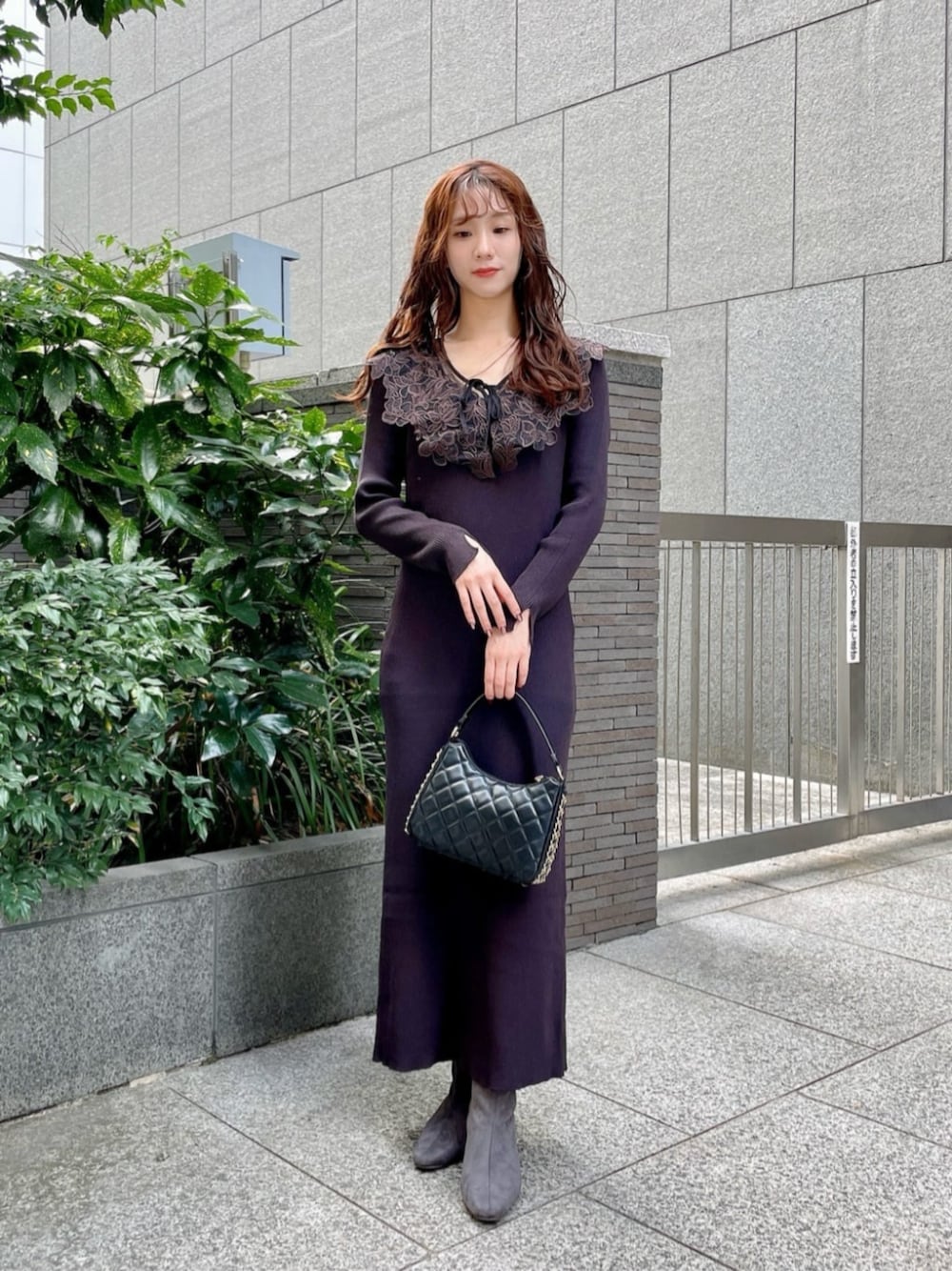 STAFF身長:153cm 【着用サイズ】ワンピース:S 《ケープ風レース付きニットワンピース》前回大人気だったケープデザインはそのままに、秋冬通してご愛用いただける形になって再登場しました♡ スッキリとしたマーメイドシルエットですが、ニット素材なので肌触りが良く着心地×スタイルアップを叶えます◎ アウターを羽織る季節には、ケープ部分を出してフェミニンにお召しいただくコーデがオススメです♡ 身長153cmでSサイズを着用しており、着丈は足首上とフラットシューズとも相性のいい長さです!
