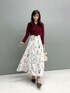 STAFF身長:159cm 【着用サイズ】トップス:S/スカート:M 《トップス》プロポで毎年大人気♡1枚あると間違いない万能ニットです!今季は総針編みでより上品な雰囲気に◎ボウタイのリングは取り外し可能なので、お好みで印象を変えられます!レーヨンが多く入っており、さらっとした肌触りで着心地も抜群です!程よく大きいボウタイがジャケットなどと合わせた時も存在感があり華やかに決まります◎ 《スカート》プロポオリジナルの花柄スカートです♡落ち着いた配色の花柄なので華やかさはありつつも大人っぽく決まります!ウエストは後ろゴム仕様で着心地も楽ちん◎ポリエステル100%でシワになりにくくお取り扱いもしやすいです!ワンサイズ上げての着用のため少しゆとりはありますが、ゴム仕様なので体にフィットして着用できました◎