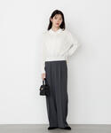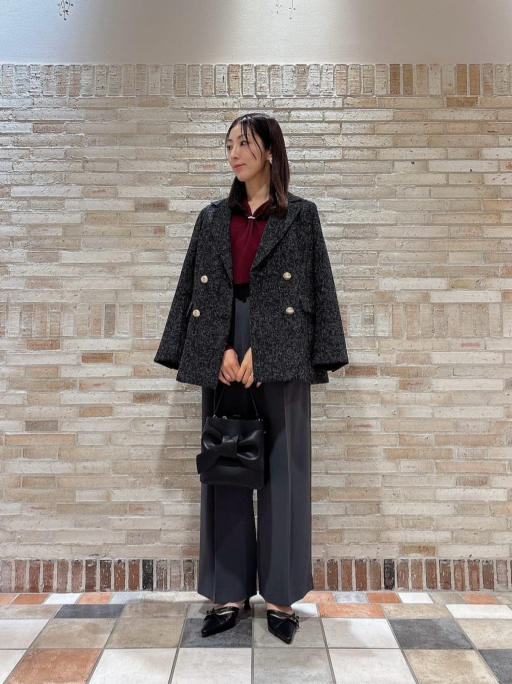 STAFF身長:154cm 【着用サイズ】トップス:S/パンツ:PS/ジャケット:PXS 《パールリングボウタイニット》毎年大人気のプロポーション定番のボウタイニット!リボン結びタイプのボウタイだと可愛くなりすぎてしまうと懸念される方も挑戦して頂きやすいデザインになっております。 パールリングは付いているだけでアクセサリー代わりになり、お顔周りを華やかにしてくれます◎取り外しも可能なのでシーンに合わせて大活躍の1枚◎ 《シーズンレスタックパンツ》少しとろみ感のある素材とウエスト後ろのゴムが履き心地抜群◎ しっかりセンタープレスが入っているのでオフィスではもちろん、カジュアルなアイテムと合わせてもきちんと感があるので大人女子にぴったりな1枚です!154cm、ヒール5.5cmのパンプス着用で足首が見える丈感です。フラットシューズも履ける丈感です。 《ゴールド釦ダブルブレストジャケット》ツィード素材のブラックミックスがコーデのアクセントに◎同素材のタイトスカートと合わせてセットアップで着用するのもオススメです!
