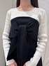 STAFF身長:154cm 【着用サイズ】トップス:FR/ボトム:PS 《レイヤード風ニット》 ◎着心地 ニット地なので伸縮性あり、薄手。 胸元のデザインも重さなくお召し頂けます。 結び目は自分で結べるタイプです。 ◎丈感 袖丈は親指の関節にかからないくらい。 着丈は短めで腰に少しかかるくらい。INしなくても着こなしができる丈感です。 《バルーンスカート》 ◎着心地 スカートはウエストの後ろだけゴムになっており、前からはキレイなシルエットですが楽さもあるスカートです。張り感ありすぎず、腰回りは広がりすぎない仕様。動くと裾がふわっと舞います。 ◎丈感 154cm、ヒール6cmのブーツ着用で足首が見える丈感です。