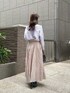 STAFF身長:158cm 【着用サイズ】ニット:PS/スカート:M 《コーディネートポイント》 毛足の長いふわもこニットに、軽やかなシアーフレアスカートを合わせた大人フェミニンスタイル。 パステルブルー🩵が顔まわりを明るく見せ、上品な抜け感を演出します。 【着用感】 ●トップス(PSサイズ着用) きれいめに着たい方はPSサイズがおすすめ。 デニム合わせ等でゆるっとカジュアルに着崩したい方はMサイズもおすすめです。 ラメ入りですが、チクチクせずストレスフリーな着心地です🌱 ●ボトムス(Mサイズ着用) 158cm/ヒール6.5cm着用でくるぶし上の着丈。 ベルト穴が多く、ウエストが細めの方もぴったり調整可能。ウエストマークでスタイルアップして見えます✨