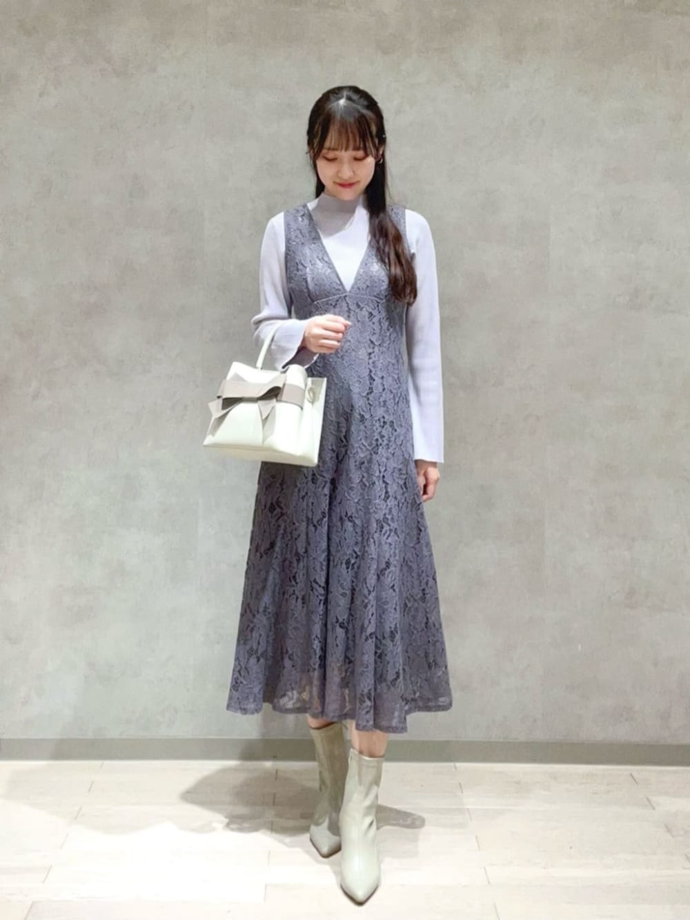 STAFF身長:164cm 【着用サイズ】ワンピース:M/トップス:M 《コーディネートポイント》 春先でも使えるカラー合わせにしました。 プロポーションが得意とするニュアンスカラーで上品で高見えするジャンスカは、着ぶくれの心配もなく女性らしい印象でお召しいただけます。