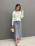 STAFF身長:154cm 【着用サイズ】 トップス:S/スカート:S 《ラメ入りアイレットボクシーニット》 さりげないラメ感がかわいいニットです✨ 細かいスパンコールがラメ糸と縫われているデザインですが、肌に触れてもチクチクはなくサラッとしているため着やすい1枚です! 《ナローサテンスカート》 程よい光沢感が上品なスカートです! シンプルなデザインではありますが、裾のシアーがキレイめな印象になり抜け感のあるデザインです✨ 154cm Sサイズ着用で着丈はくるぶしくらいのためフラットシューズでも◎