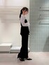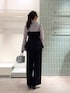STAFF身長:158cm 【着用サイズ】ビスチェ:FR/ブラウス:S/パンツ:PS 《コーディネートポイント》 春らしいラベンダーカラーのレースブラウスを主役にしたスタイリング。 トレンドのレース素材と大きめの襟が、顔まわりを華やかに見せてくれます。 ブラックのビスチェをレイヤードすることで甘さを程よく引き締め、大人っぽい印象に。 ビスチェのペプラムシルエットがウエスト位置を高く見せ、スタイルアップも叶います。 お食事やお出かけ、きれいめなお出かけコーデにもおすすめです。 ⸻ 【着用感】 ●ビスチェ(FRサイズ着用) バスト周りはバックゴム付きでフィット感がある着心地。ペプラム部分はお尻が半分隠れる丈、へそ上から切り替えられておりお腹周りが自然にカバーされます!肩紐は取り外し可能です🙆♀️ とろみのある素材で動きが出やすく、綺麗めなな印象です。 ●ブラウス(Sサイズ着用) 158cmでヒップにかかる丈感。身頃は程よくコンパクトで、自然にくびれが生まれる美シルエットです。袖丈は手首がしっかり隠れる長さでした。 着心地は柔らかいレース素材で軽やか。見た目以上にチクチク感はなく、ストレスフリーに着られます。 ●ボトムス(PSサイズ着用) 158cmでフラットシューズでも着られる着丈。 ウエストは共布ベルトで調節でき、程よくフィットします。 タック入りなので腰回りや太もものラインを拾いにくく、かつ落ち感のある素材で広がりすぎず、すっきりとした縦ラインを演出してくれます✨ 動きやすさもあり、快適な着心地です🌱