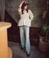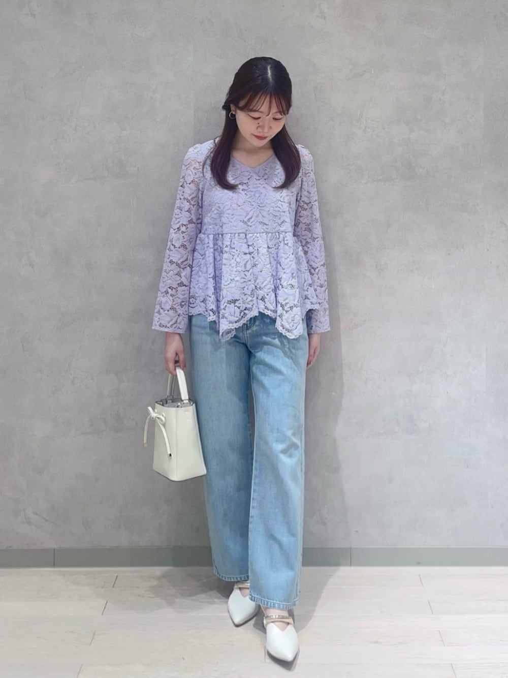 STAFF身長:154cm 【着用サイズ】トップス:S/デニム:PS 【<ウォッシャブル>レースペプラムブラウス】 裾のイレヘムデザインが華やかで一枚で着映えします✨繊細なレースかつ、Vネックなので大人上品に着ていただけます。 ウエスト後ろのみゴムが入っているのでお腹周りの締め付けもなく、からだのラインを気にせず着れます! 【<a/mie> ソフトストレートデニム】 従来のデニムに比べて薄めで柔らかい素材なのでさらっと軽やかに履けます。 脚のラインは拾わないサイズ感でカジュアルになりすぎない太さのデニムです! 154cm、PSサイズ着用でくるぶし隠れる丈ですが、着用の1.7cmヒールでも問題なく履けました!