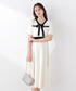 STAFF身長:162cm 【着用サイズ】ワンピース:M ○スタイリングポイント エクリュ×ブラックのバイカラーとリボンタイが可愛い、 お上品なワンピースコーデです♡ ⚫︎ワンピース(Mサイズ着用) くるぶしより20cmほど上の丈感です。 少し短めの丈感で程よく抜け感があります◎ フィット&フレアラインですが、 やりすぎないフィット感なので、 ラインの出方は気にならなかったです! エクリュ色ですが、透け感は気にならなかったです◎ しっかりとした生地で、さらりとしているため、 今から春先まで着用いただけます🌼