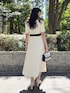 STAFF身長:162cm 【着用サイズ】ワンピース:M ○スタイリングポイント エクリュ×ブラックのバイカラーとリボンタイが可愛い、 お上品なワンピースコーデです♡ ⚫︎ワンピース(Mサイズ着用) くるぶしより20cmほど上の丈感です。 少し短めの丈感で程よく抜け感があります◎ フィット&フレアラインですが、 やりすぎないフィット感なので、 ラインの出方は気にならなかったです! エクリュ色ですが、透け感は気にならなかったです◎ しっかりとした生地で、さらりとしているため、 今から春先まで着用いただけます🌼