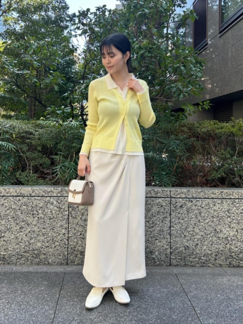 STAFF身長:161cm 【着用サイズ】ニット:M/スカート:M 《レイヤード風リブニット|Mサイズ》 配色デザインが目を引く、 一枚でサマになるレイヤード風リブニット。 トップス風にも、ボタンを開けて抜け感のある着こなしなど、色々なシーンに合わせて着方を楽します✨ 体のラインを拾いすぎない程よいフィット感で、女性らしさと上品さを両立した一枚です。 《アシメタックナロースカート|Mサイズ》 フロントタックがウエストまわりをすっきり見せてくれます✨ 左寄りに入れた深めのフロントスリットが女性らしく、スタイルアップ効果も◎ ハリ感と落ち感のある素材で、体の線を拾いすぎず、縦ラインを上品に見せてくれます。 161cm、Mサイズ着用でくるぶし見えるくらいの丈感です!