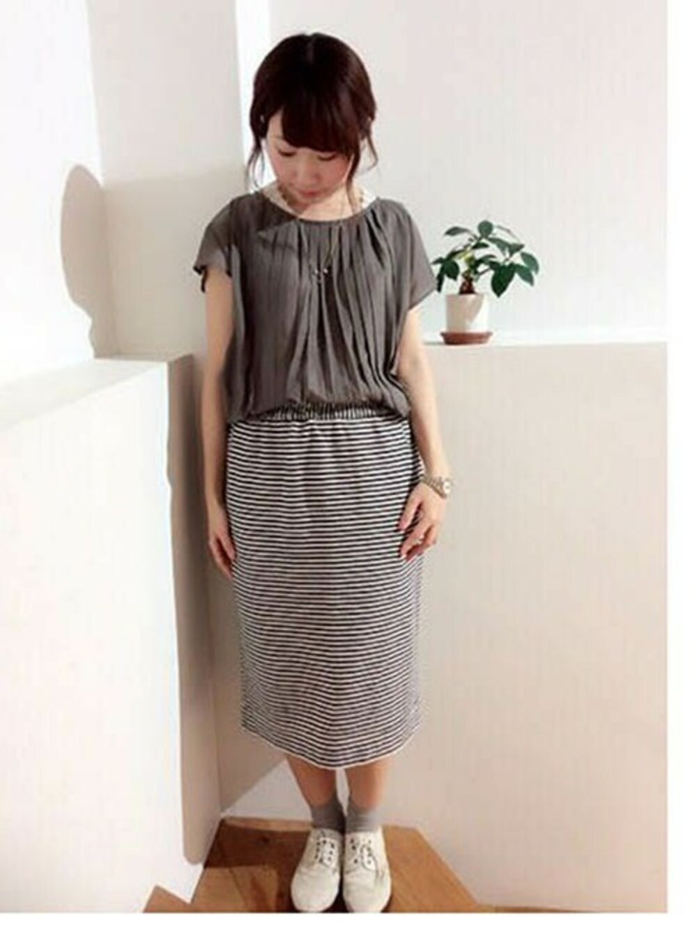 タイトなシルエットで大人な印象。 長さも膝下なので安心して着ていただけます♪