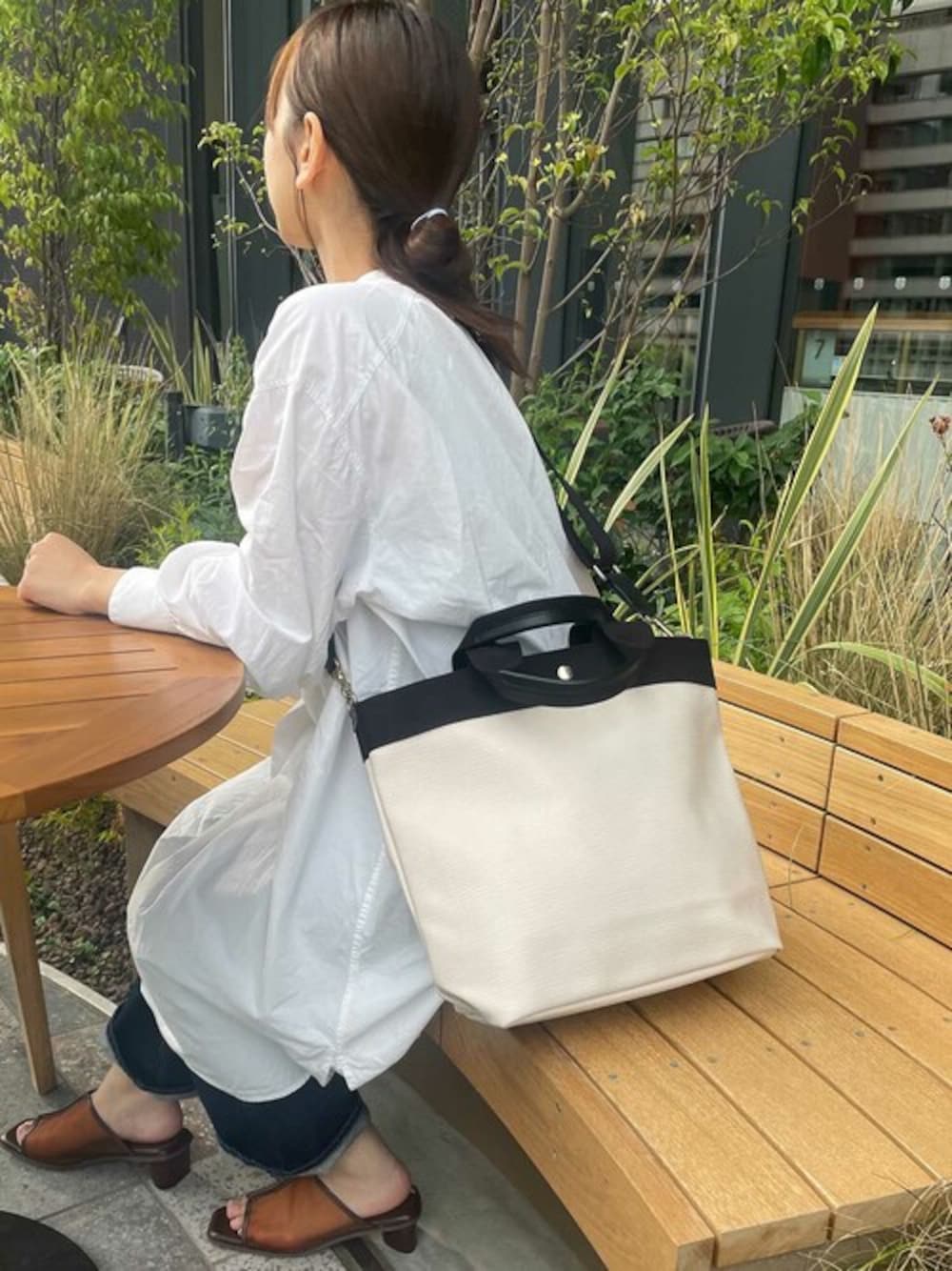 マスターのトートバッグ「【WEB限定】【VERY 10月号掲載】【Breath TOPKAPI /ブレス トプカピ】【A4対応】【撥水】リプル 縦型 ショルダー付き トートバッグ」を使ったコーディネート