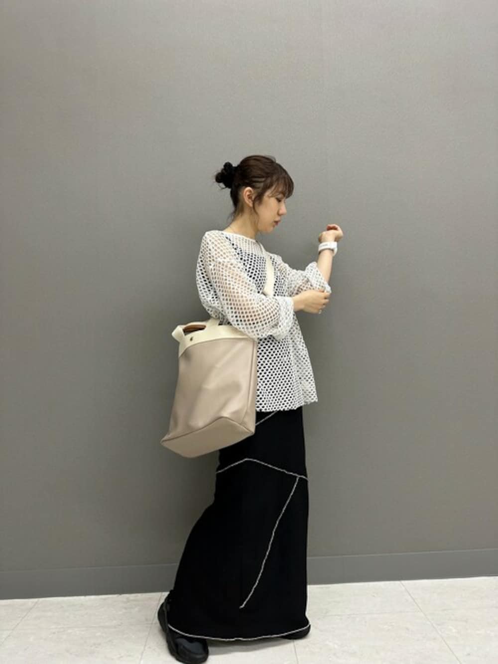 マスターのトートバッグ「【WEB限定】【VERY 10月号掲載】【Breath TOPKAPI /ブレス トプカピ】【A4対応】【撥水】リプル 縦型 ショルダー付き トートバッグ」を使ったコーディネート