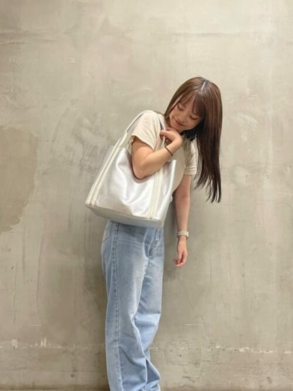 コーディネートのワンポイントにもってこいのシルバーカラーのレザートートバッグです♪ キズや汚れが目立ちにくいシュリンクレザーを使用しているのでお出かけだけではなくお仕事用のバッグとしてもおすすめです! A4サイズが収まり、深さもしっかりあるので水筒や折りたたみ傘などの長さのあるものもスッキリ入ります! ポケットが内側に3つ、外側に1つ付いているのもポイント高めです♪