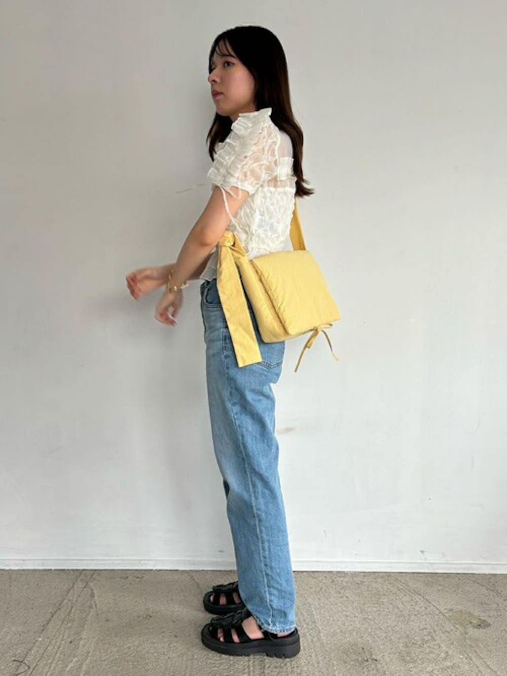 マスターのショルダーバッグ「Nylon padded ribbon shoulderbag/ナイロン パデット リボン ショルダー バッグ」を使ったコーディネート