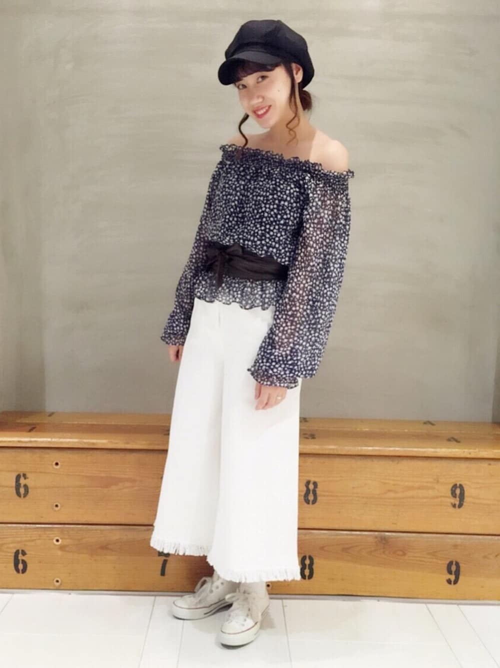 ネイビー×ホワイトの夏コーデ◎ オフショルは毎シーズン1枚はGETしておきたい🎵