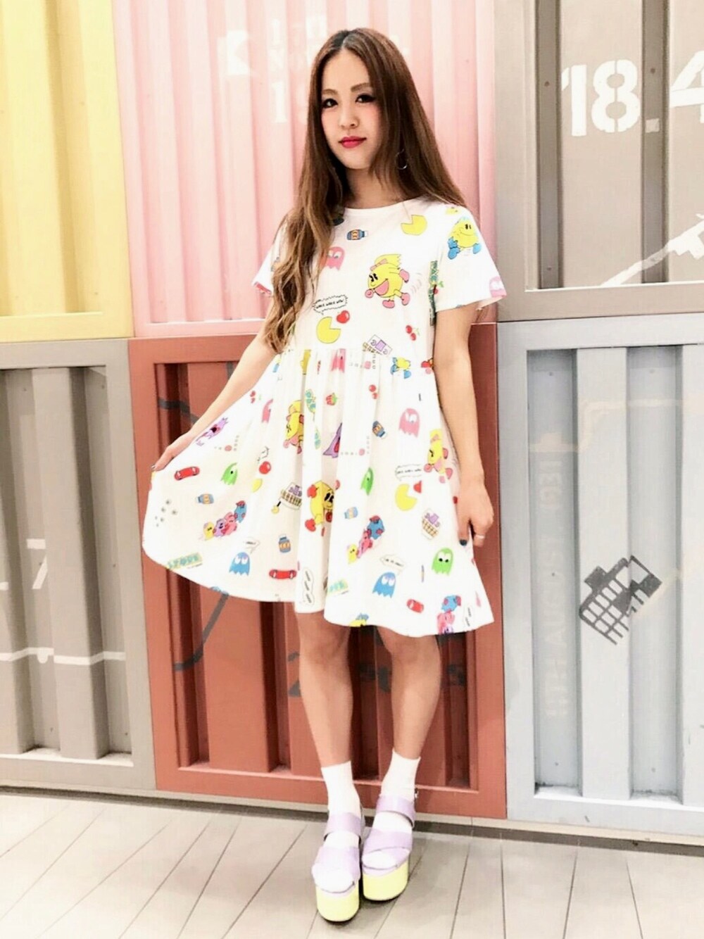 PUNYUS (PUNYUS)のワンピース「パックストア総柄ワンピース」を使ったコーディネート