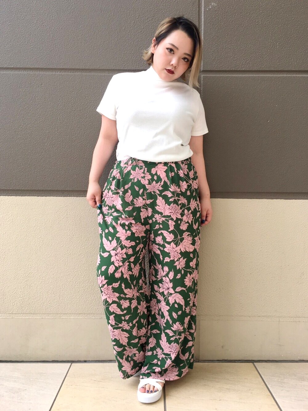 リゾート柄にはシンプルなトップスを◎ ゆったりワイドパンツは これからの時期にピッタリ!