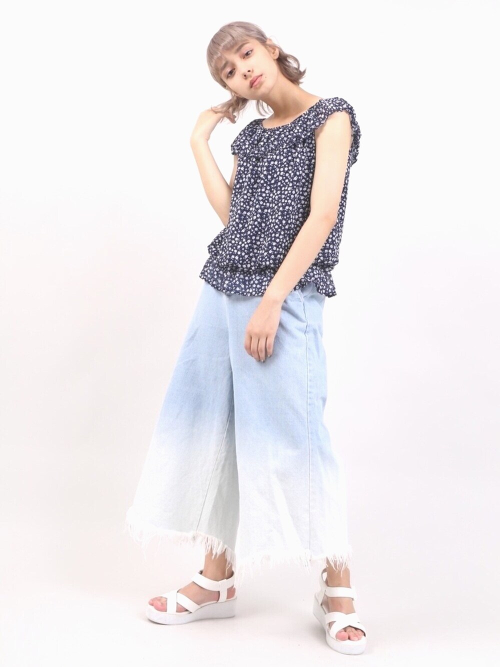 グラデーションが可愛い 新作のブリーチデニム登場🎵 花柄ブラウスを合わせて夏コーデ◎!