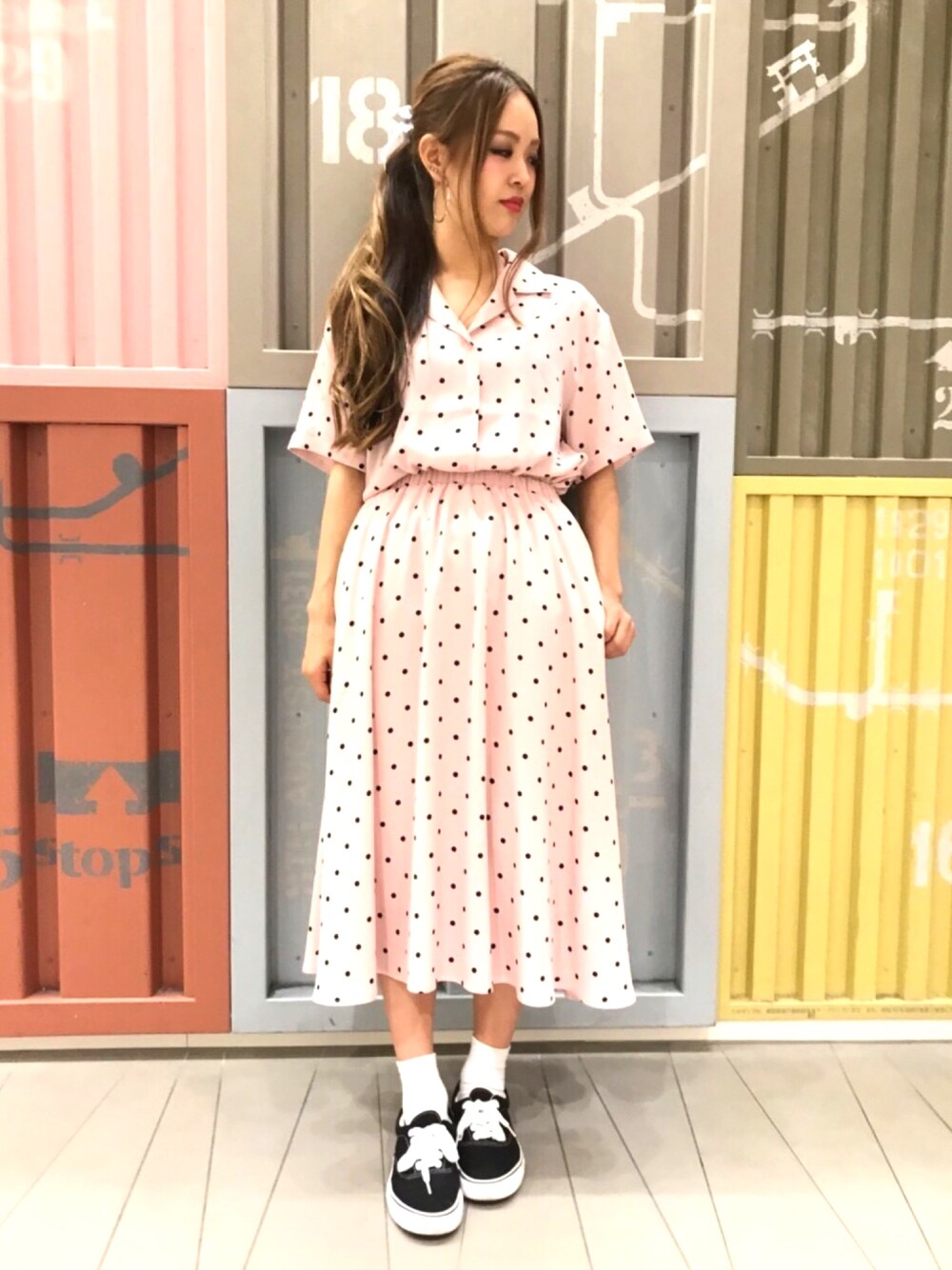 トレンドのドットアイテム◎ シャツとスカート、セットアップがおすすめ♬