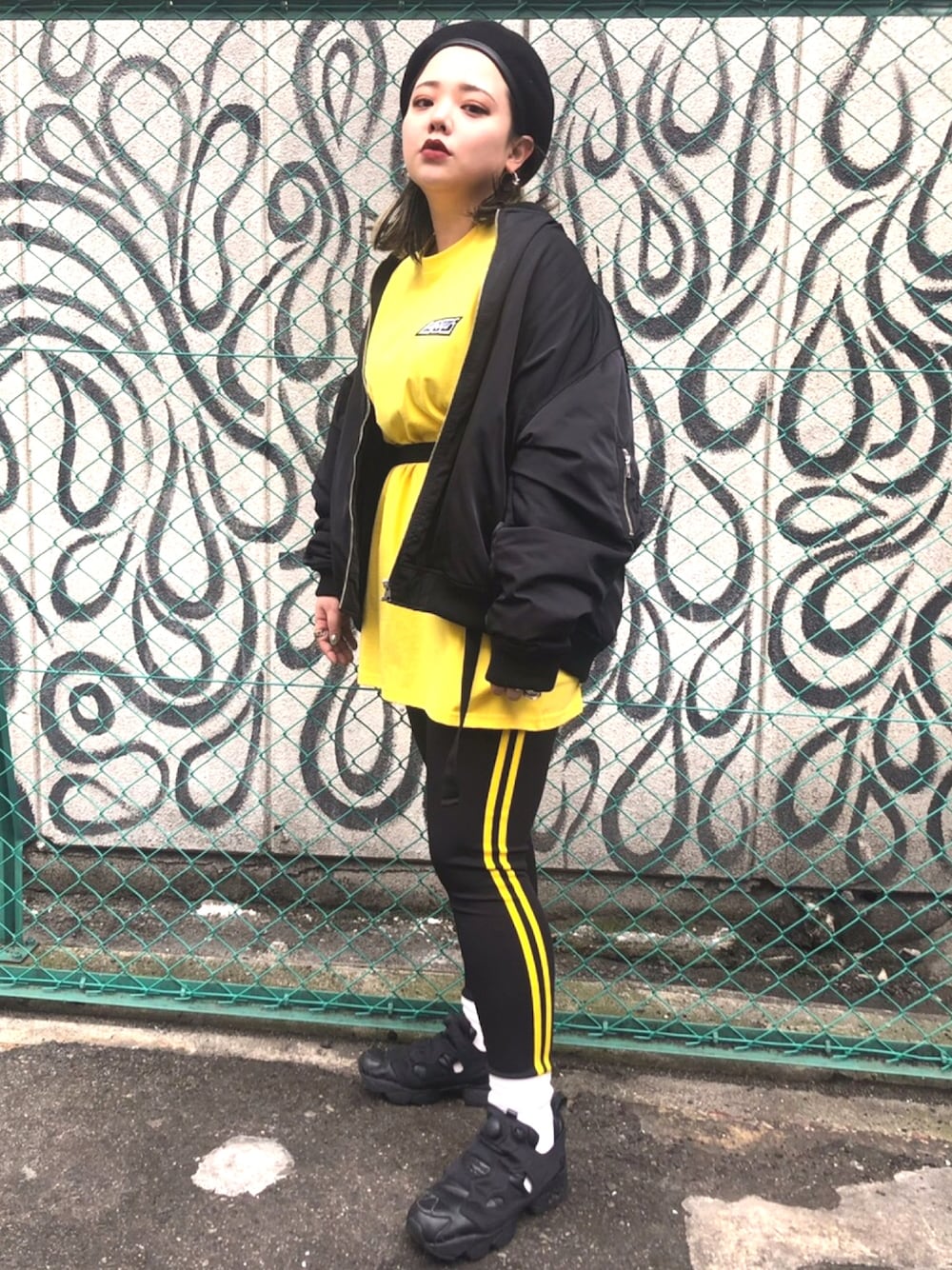イエロー×ブラックのストリートコーデ◎ビッグシルエットのトップスにはレギンスが相性◎!