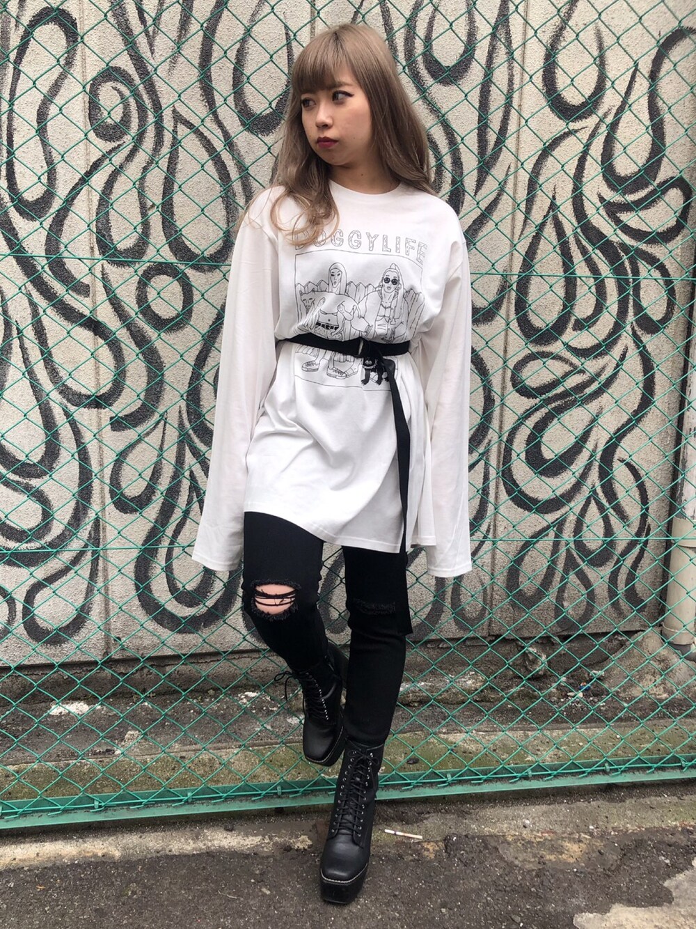 PUNYUS (PUNYUS)のTシャツ/カットソー「DOGGYLIFEロンT」を使ったコーディネート