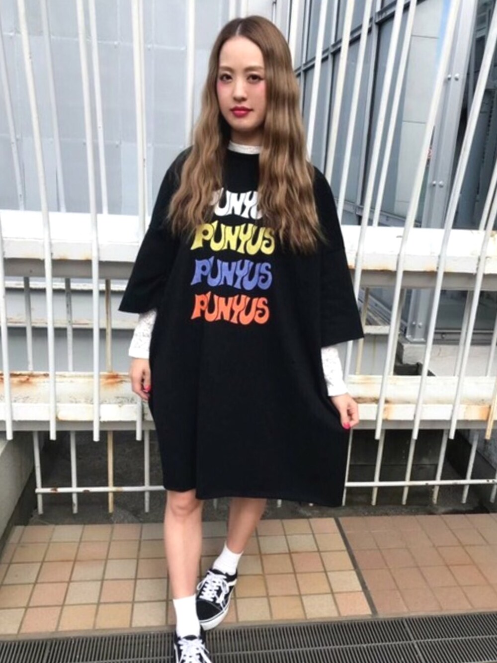 PUNYUS (PUNYUS)のTシャツ/カットソー「4連ロゴビッグTシャツ」を使ったコーディネート