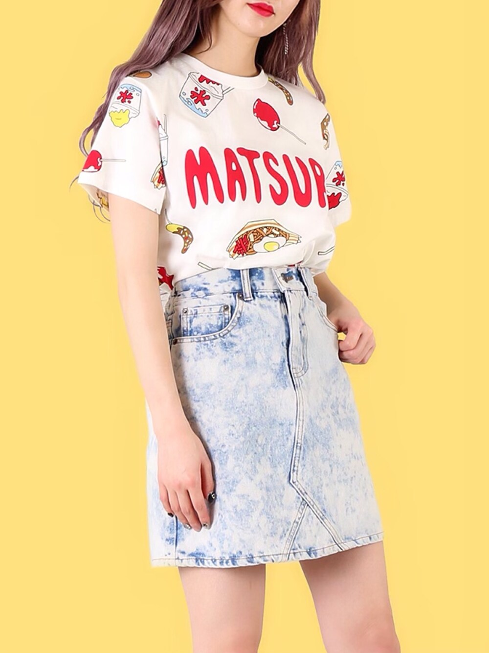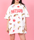 かき氷、りんご飴やチョコバナナなど! 祭りにまつわるイラストがプリントされた総柄Tシャツ。 男女問わずユニセックスで使用でき、ギフトにもオススメ☆