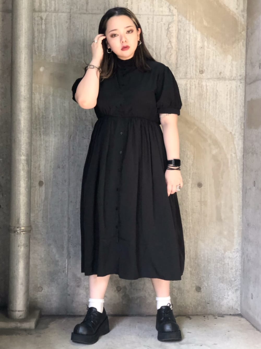 PUNYUS (PUNYUS)のワンピース「半袖レトロワンピース」を使ったコーディネート