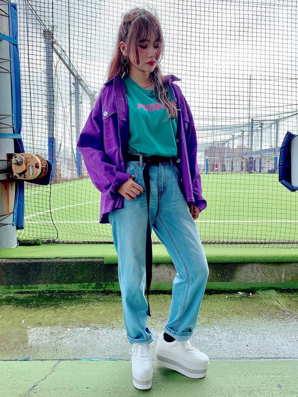 PUNYUS (PUNYUS)のTシャツ/カットソー「ロゴプリントTシャツ」を使ったコーディネート