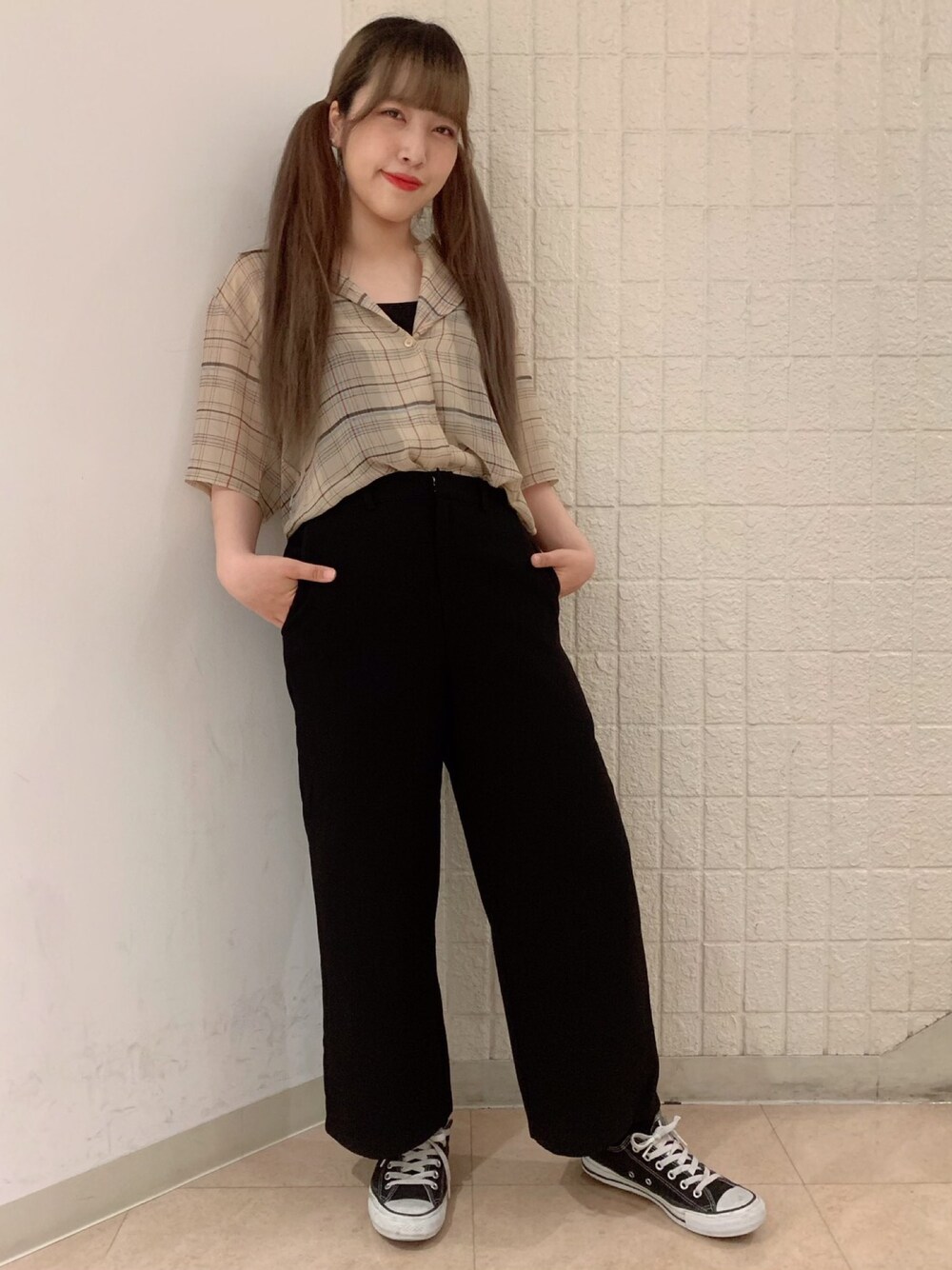 PUNYUS (PUNYUS)のシャツ/ブラウス「ショート丈シフォンチェックシャツ」を使ったコーディネート