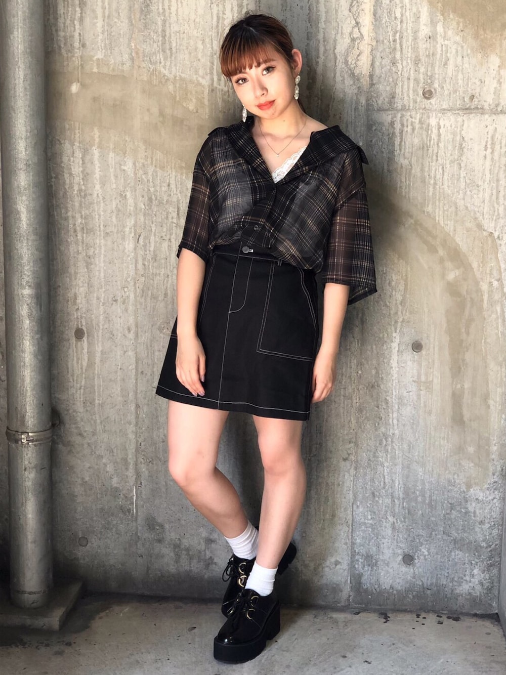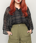 PUNYUS (PUNYUS)のシャツ/ブラウス「ショート丈シフォンチェックシャツ」を使ったコーディネート