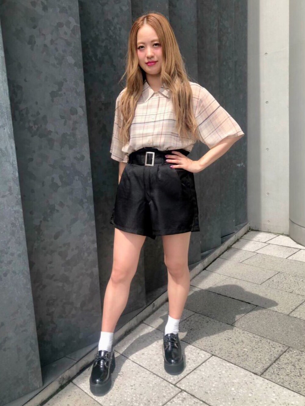 PUNYUS (PUNYUS)のシャツ/ブラウス「ショート丈シフォンチェックシャツ」を使ったコーディネート