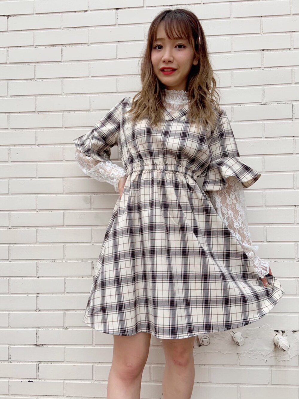 PUNYUS (PUNYUS)のワンピース「バックリングチェックワンピ-ス」を使ったコーディネート