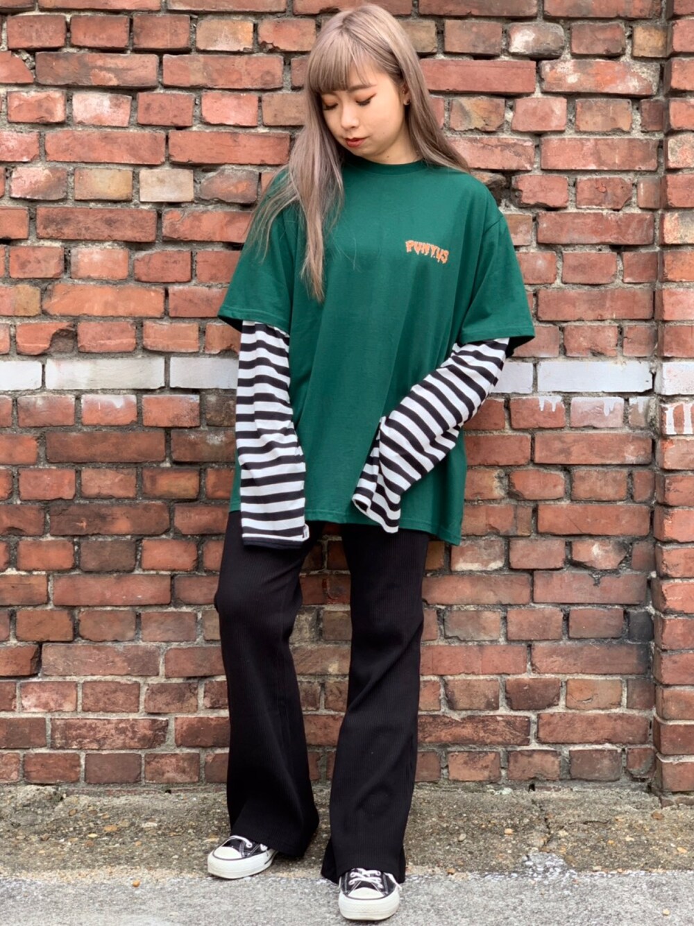 PUNYUS (PUNYUS)のTシャツ/カットソー「バックボタンロゴTシャツ」を使ったコーディネート