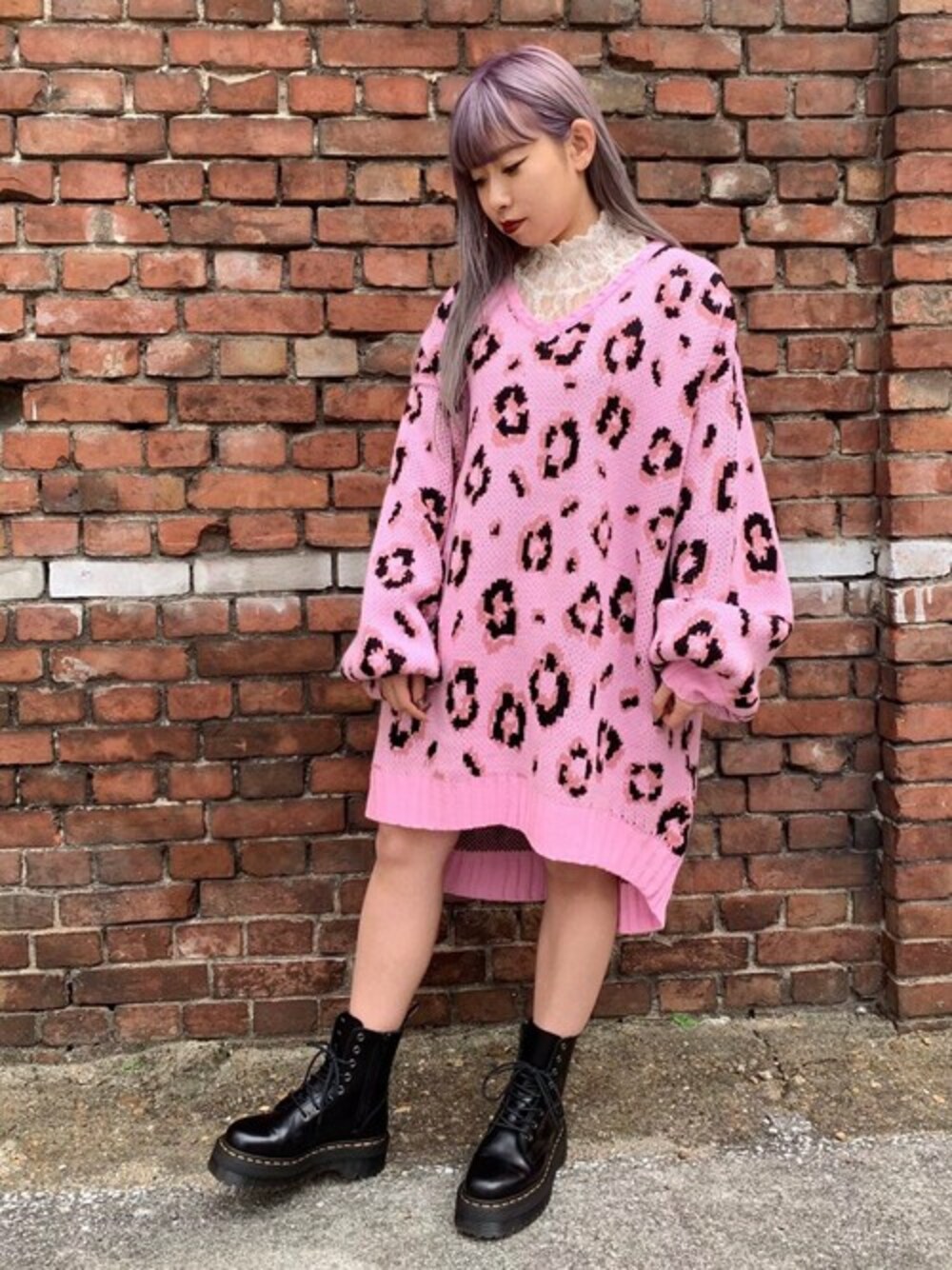 PUNYUS (PUNYUS)のニット/セーター「レオパードVネックビッグニット」を使ったコーディネート