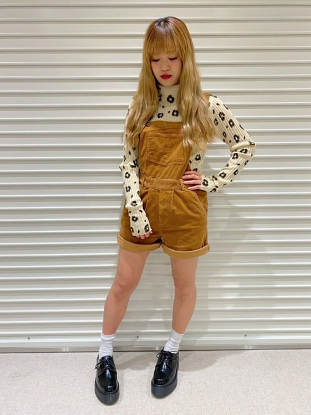 PUNYUS (PUNYUS)のサロペット/オーバーオール「コーデュロイショートサロペット」を使ったコーディネート