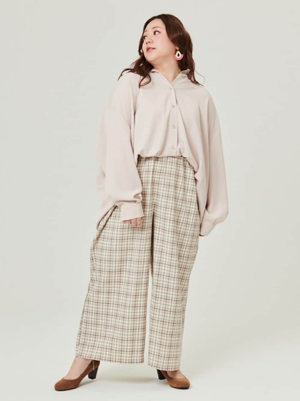 上下ともゆったりシルエットで合わせるときは トップスを軽くインしたり、パンプスで足元を引き締めたり メリハリをもたせるとおしゃれに♪