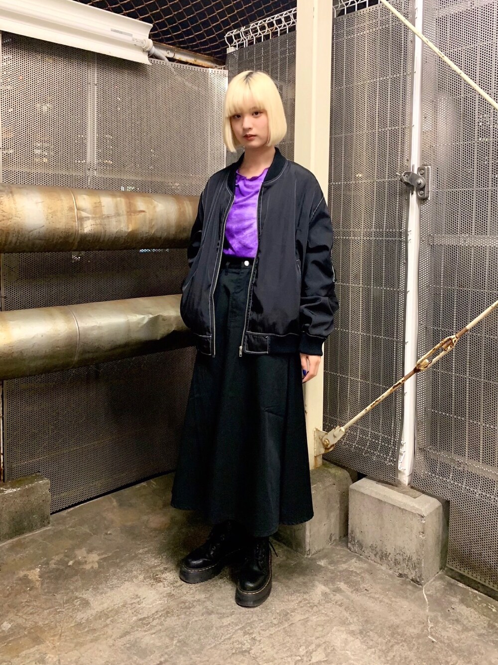 オーバーサイズのMA1にロングスカート、ブラックメインのクールなコーデに★