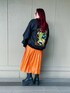 刺繍ブルゾン×レザープリーツスカートの個性派コーデ! 冬でもカラー物でオシャレに♪